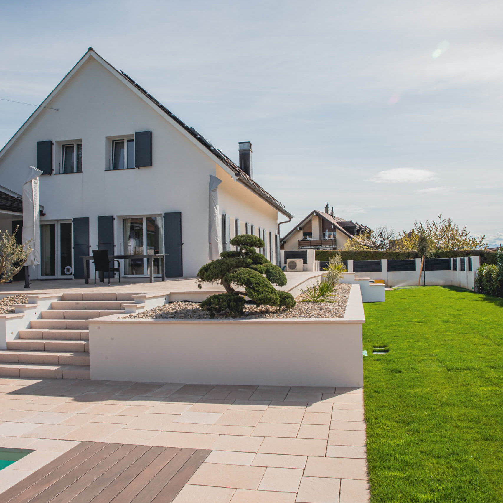 Les dalles en béton Norwood permettent la création d’ambiances chaudes et naturelles. La noblesse des veines du bois de chêne confèrent aux terrasses un plaisir visuel inégalé. Elles se composent à partir de lames extra-larges stables et confortables.
